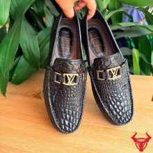 Da gai tay cá sấu sở hữu vân da không trùng lặp, tạo giá trị độc bản cho từng đôi giày. Sắc đen sang trọng giúp dễ phối đồ, từ vest đến trang phục smart-casual.