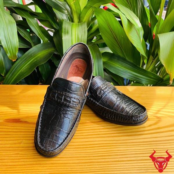 Mẫu giày tây lười cao cấp da bụng cá sấu GCA8 màu đen mang lại vẻ ngoài lịch lãm, sang trọng cho quý ông hiện đại, kết hợp tinh tế giữa chất liệu tự nhiên và thiết kế thời thượng.