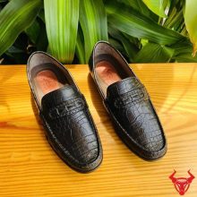Giày lười GCA8 chế tác thủ công từ da bụng cá sấu thật, tông màu đen mạnh mẽ, mang đến sự tinh tế và đẳng cấp vượt trội cho phong cách của quý ông.
