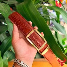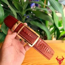 Gam màu nâu đỏ sáng kết hợp vân vảy chân tự nhiên tạo nên tổng thể hài hòa, sang trọng, phù hợp với phong cách doanh nhân hiện đại yêu thích sự tinh tế và đẳng cấp.