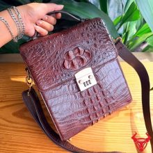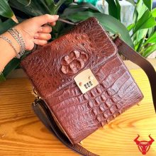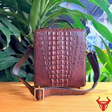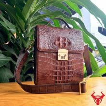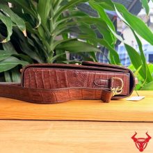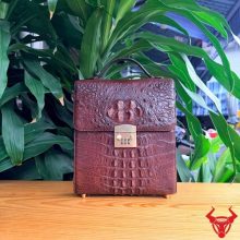 Túi xách nam đeo chéo TICA4-A sử dụng da cá sấu gù tự nhiên cao cấp, màu nâu đất sang trọng. Thiết kế chắc chắn, form đứng lịch lãm, mang lại phong thái đẳng cấp và bền bỉ theo thời gian.