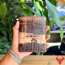 Ví 3 gấp da cá sấu VRA8 bền bỉ màu nâu cà phê
