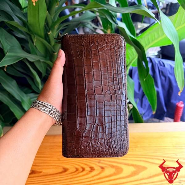 Chất liệu da cá sấu cao cấp với vân tự nhiên độc đáo, kết hợp thiết kế tiện dụng giúp người dùng dễ dàng mang theo trong mọi hoàn cảnh.