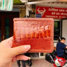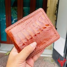 Vân nốt chân đà điểu phân bố tự nhiên, mỗi chiếc ví là một bản thể riêng. Gam màu nâu đỏ sáng mang đến vẻ ngoài nổi bật, dành cho người thích sự khác biệt và không trùng lặp.